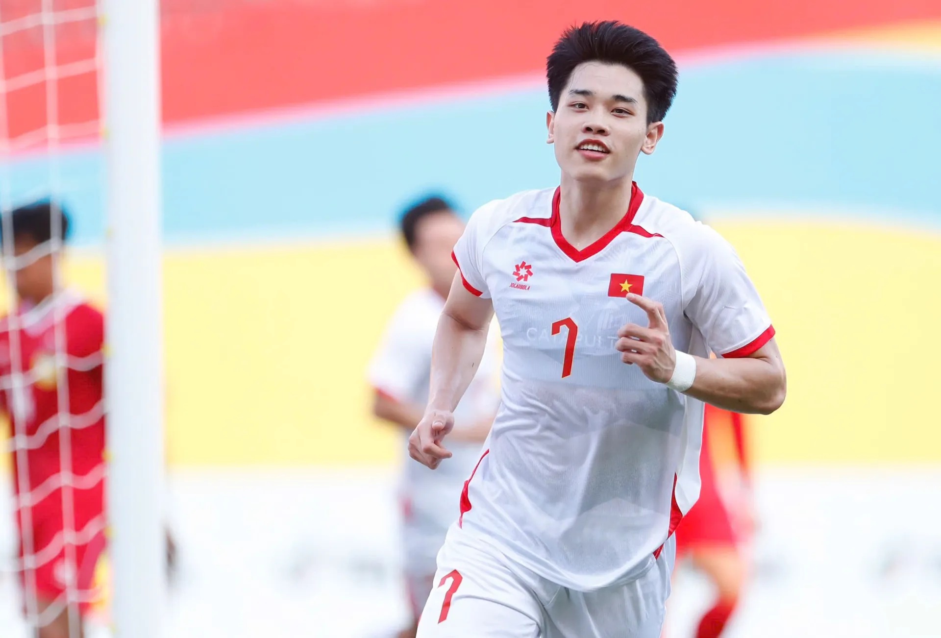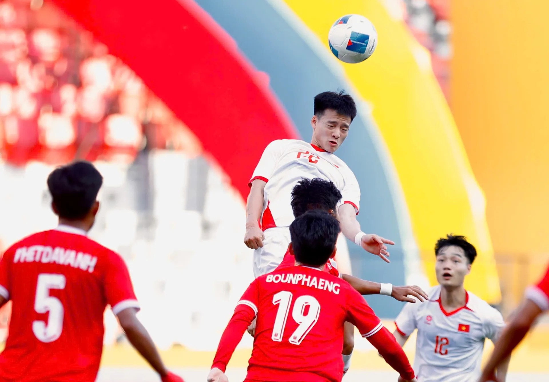 Đình Bắc toả sáng giúp U22 Việt Nam thắng U22 Lào ở trận ra quân môn bóng đá nam SEA Games 33. Ảnh: Hữu Phạm.