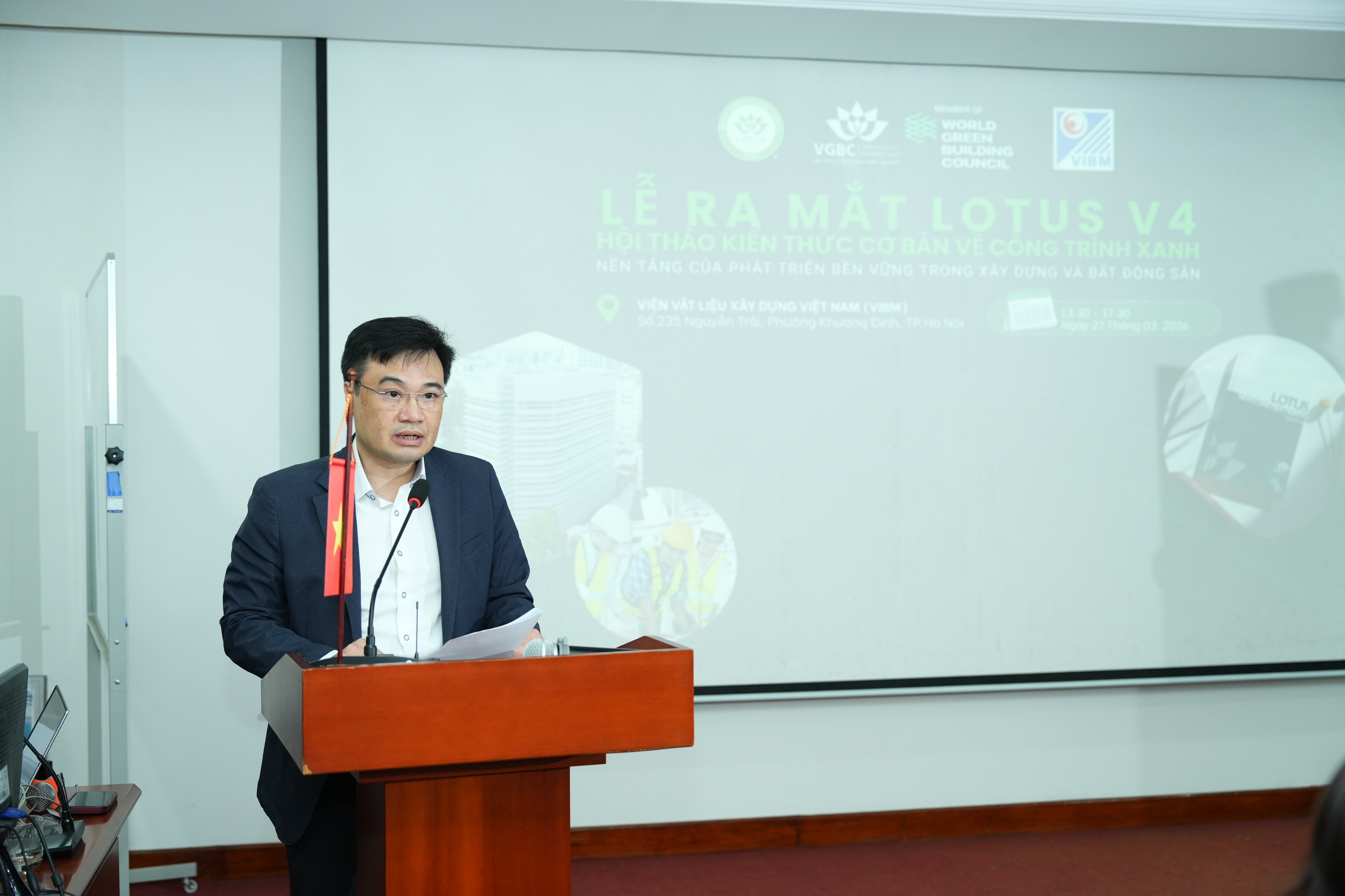 Sự kiện “Lễ ra mắt LOTUS V4 -  Hội thảo kiến thức cơ bản về công trình xanh” diễn ra vào chiều ngày 27/03/2026 tại Viện Vật liệu Xây dựng Việt Nam (Hà Nội), quy tụ các chuyên gia, doanh nghiệp, tổ chức hoạt động trong lĩnh vực xây dựng và phát triển bền vững.