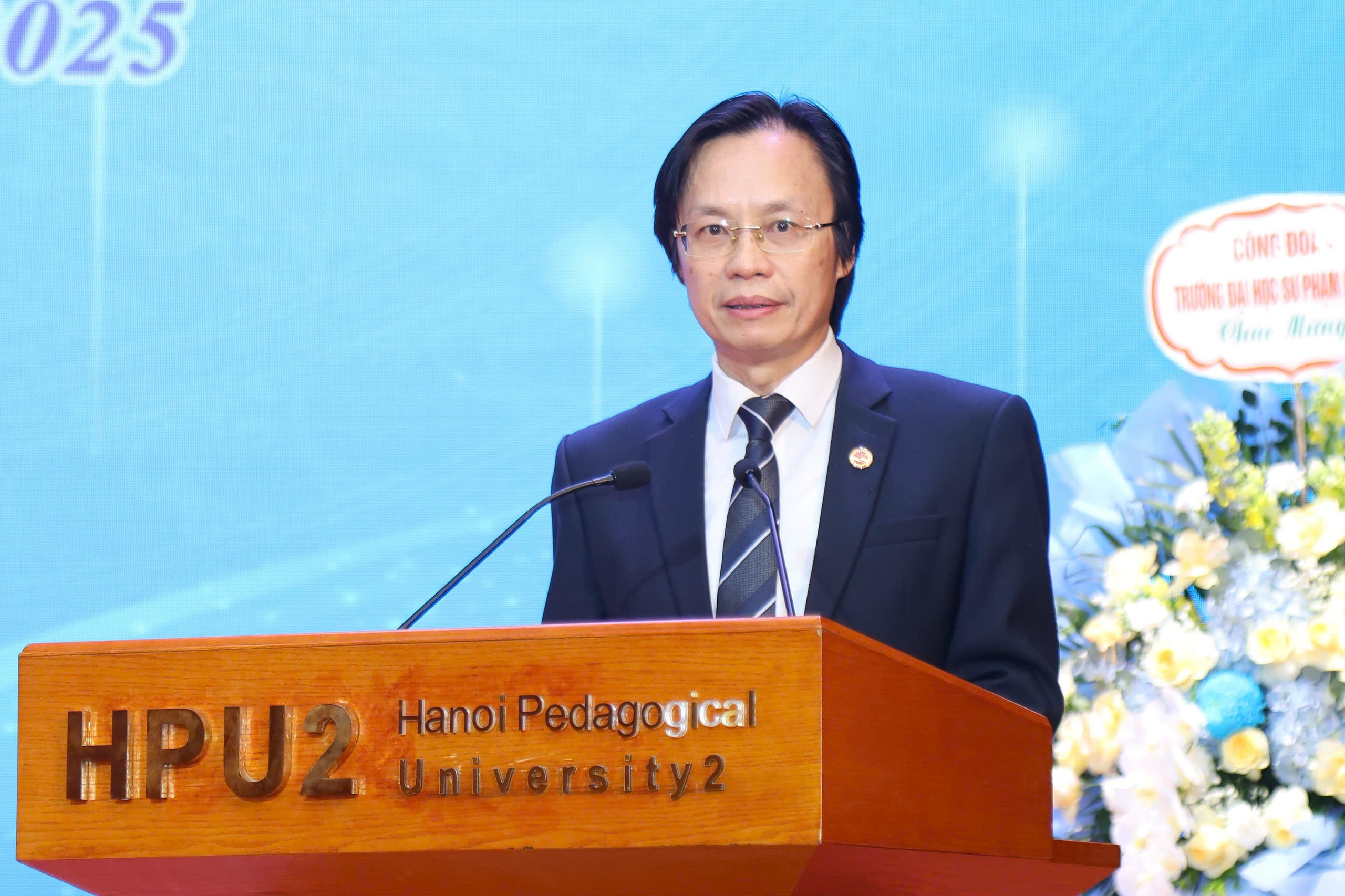PGS.TS. Phùng Gia Thế – Phó Bí thư Thường trực Đảng ủy, Chủ tịch Hội đồng Trường Đại học Sư phạm Hà Nội 2 phát biểu chúc mừng buổi lễ