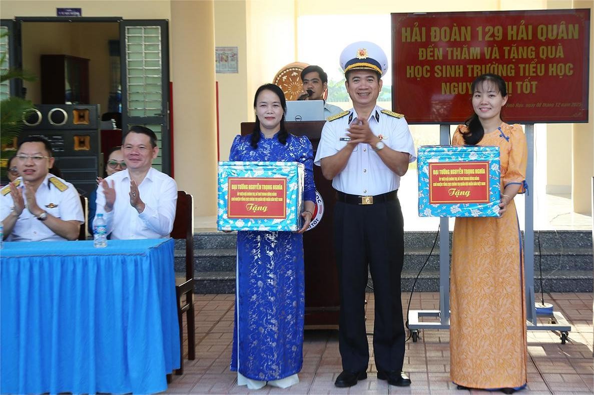 Nhân dịp này, Đại tướng Nguyễn Trọng Nghĩa, Ủy viên Bộ Chính trị, Bí thư Trung ương Đảng, Ủy viên Thường vụ Quân ủy Trung ương, Chủ nhiệm Tổng cục Chính trị Quân đội Nhân dân Việt Nam đã ủy quyền cho Hải đoàn 129 trao tặng 32 máy tính bảng và phụ kiện hỗ trợ nhà trường nâng cao cơ sở vật chất, điều kiện dạy học và chăm lo tốt hơn cho học sinh.