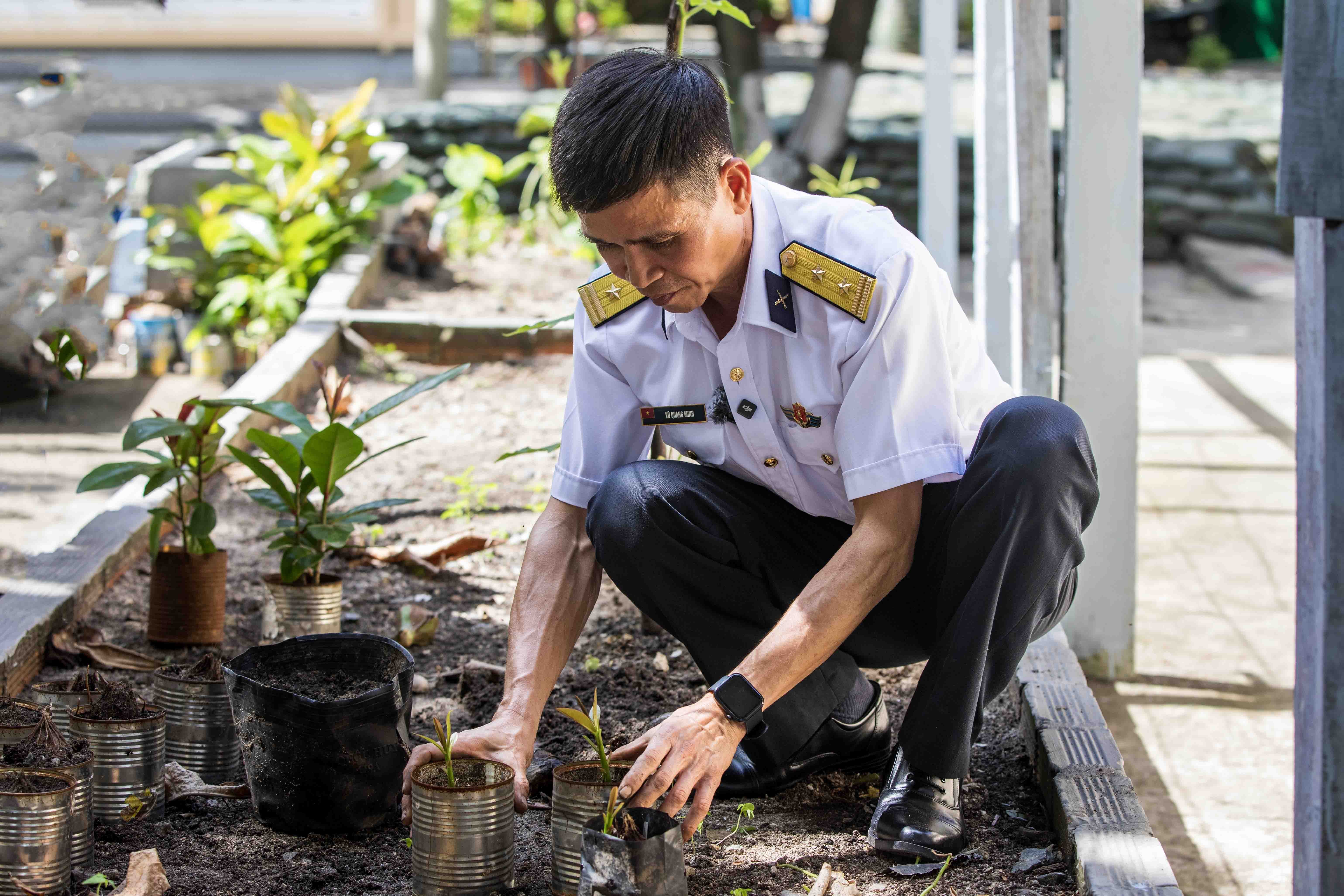 Chia sẻ về câu chuyện màu xanh trên đảo, Trung tá Vũ Quang Minh, Chính trị viên Cụm chiến đấu trên đảo Sinh Tồn, cho biết: “Trồng và chăm sóc cây xanh, nhất là cây bàng vuông, không chỉ để cải thiện môi trường sống, mà còn là nhiệm vụ gắn với ý chí bám đảo, giữ đảo lâu dài. Mỗi cây bàng vuông lớn lên là một minh chứng cho tinh thần vượt khó, cho quyết tâm xây dựng Sinh Tồn ngày càng xanh, sạch, vững chắc.”