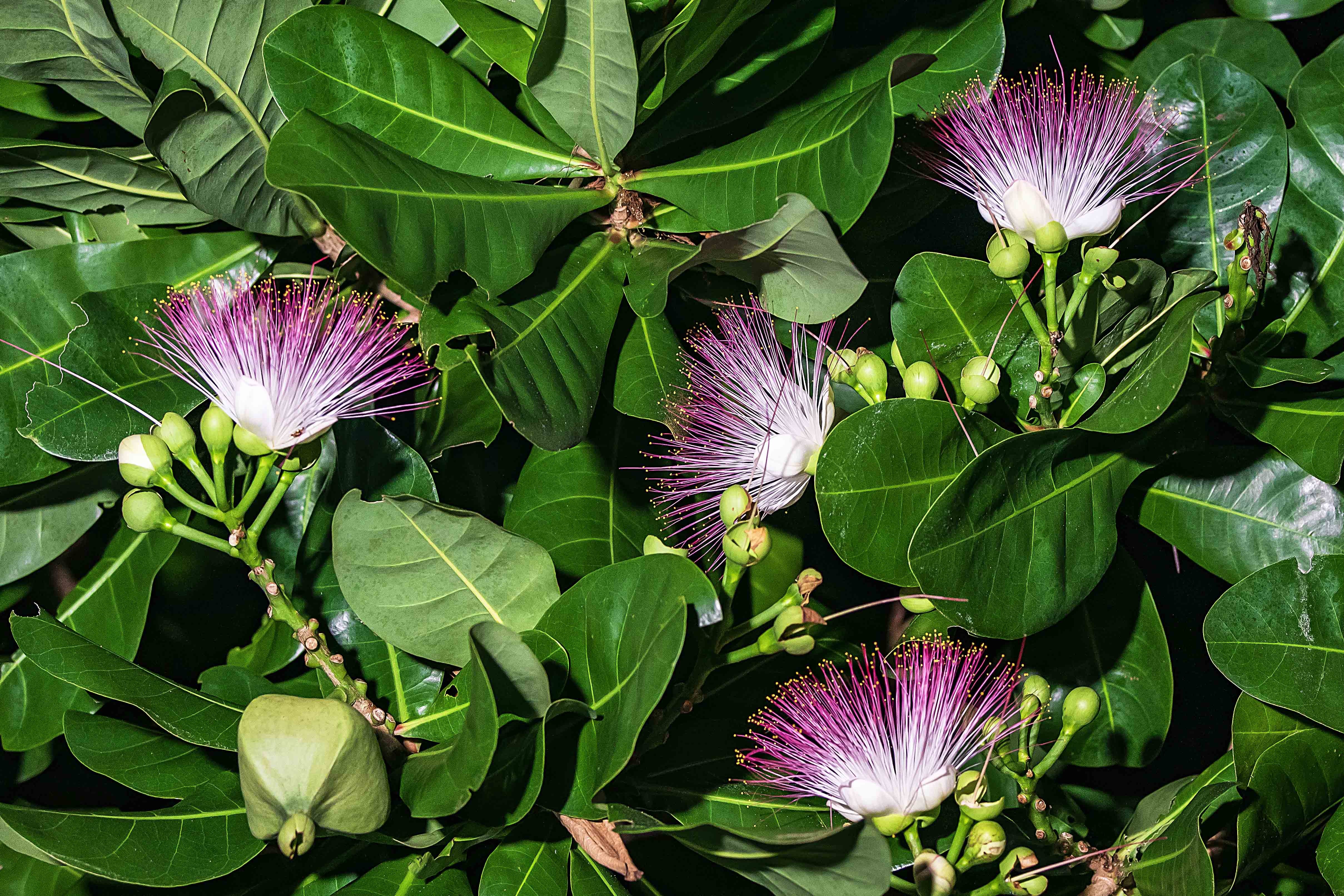 Khi màn đêm phủ xuống, trong không gian tĩnh lặng của đảo, hoa bàng vuông bắt đầu nở