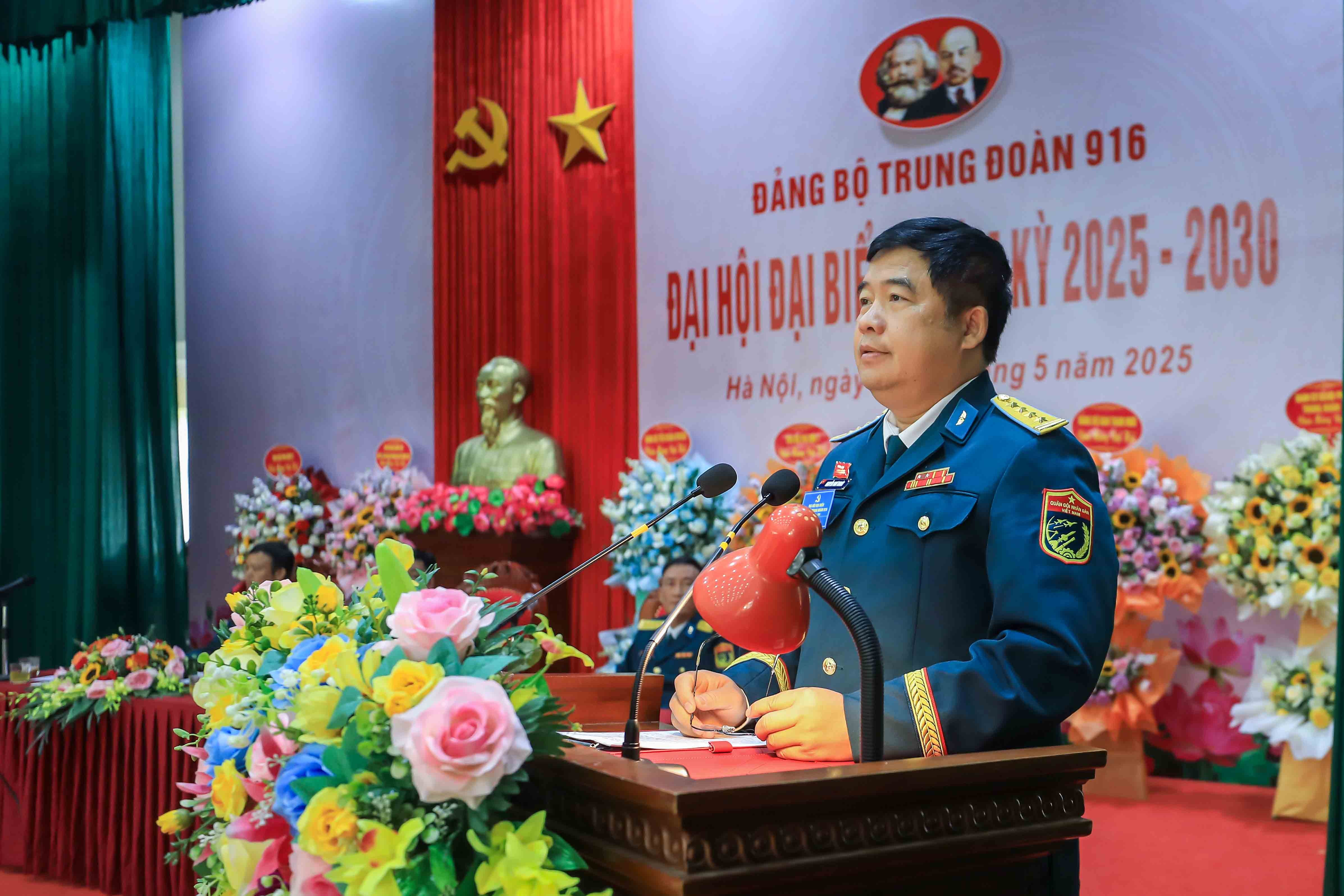 Diễn ra trong hai ngày 9 và 10/5, Đại hội đại biểu Đảng bộ Trung đoàn KQ 916 là đợt sinh hoạt chính trị sâu rộng, thể hiện sự đoàn kết, trí tuệ, ý chí và niềm tin sắt son của toàn thể cán bộ, đảng viên, chiến sĩ Trung đoàn vào sự lãnh đạo của Đảng. Với chủ đề xuyên suốt “Đoàn kết – Dân chủ – Kỷ cương – Phát triển”, Đại hội đã tập trung đánh giá khách quan, toàn diện kết quả lãnh đạo thực hiện Nghị quyết Đại hội Đảng bộ Trung đoàn nhiệm kỳ 2020-2025, đồng thời xác định rõ tầm vóc lịch sử và trách nhiệm chính trị trước yêu cầu, nhiệm vụ bảo vệ Tổ quốc trong tình hình mới.