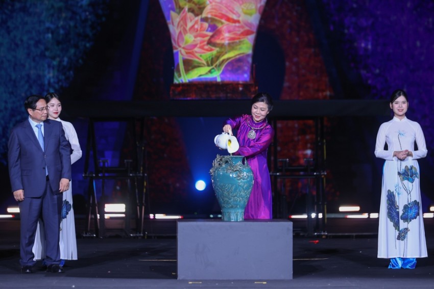 Kinhte&Xahoi Tối 10/10, tại Trung tâm Bảo tồn Di sản Thăng Long - Hà Nội (Khu di tích Trung tâm Hoàng thành Thăng Long), Thủ tướng Chính phủ Phạm Minh Chính dự khai mạc Lễ hội Văn hoá thế giới tại Hà Nội lần thứ nhất.
