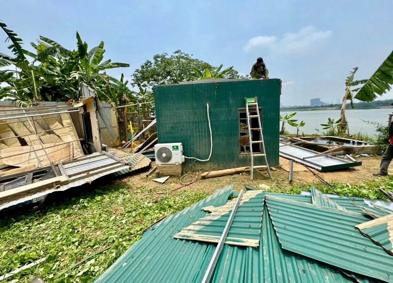 Công trình lều lán, nhà tạm tại khu vực bãi giữa sông Hồng trong quá trình được tháo dỡ.